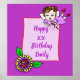 Personalice este poster agregando el nombre del chica de cumpleaños en el área personalizar. Chica de hadas feliz cumpleaños con morado brillante, verde limón, amarillo. Poster de estilo de arte folk caprichoso.