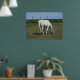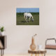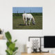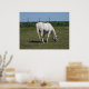 Póster Bonito Caballo Blanco comiendo en campo en granja