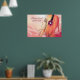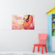 chica de anime bonito con auriculares en tonos rosados en un poster.