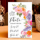 Añade un toque de diversión y creatividad a tu fiesta de graduación con este encantador cartel de "Photo Guest Book" pintado a mano. Con un bonito diseño floral de acuarelas en tonos vivos de rosa, violeta, naranja y verde, este cartel combina con gusto cualquier decoración de celebración. El elegante tipo de letra del guión, junto con las extravagantes instrucciones de "Snap it! ¡Imprímela! ¡Hazlo!" anima a los invitados a capturar recuerdos y dejar su marca de una manera única e interactiva. Perfecto para guiar a los huéspedes a su estación de libros de fotos, este cartel le añade un toque personal y elegante a su día especial.