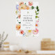 Señal de bienvenida de la ducha de boda floral. El diseño presenta un borde de coloridas flores pastel. Personalice su información o haga clic en "Haga clic en el personalizar más adelante" para editar estilos de fuente, tamaño y colores.
