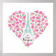Este diseño tiene un símbolo en forma de corazón con flores rosas y la Torre Eiffel.