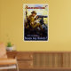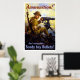 Este vintage poster de la Primera Guerra Mundial muestra a un soldado estadounidense disparando una ametralladora en un campo de batalla. Su mano está llegando para más municiones. Dice: "¡Munición! Y recuerden - ¡Los bonos compran balas!" Celebre la historia estadounidense y de la primera guerra mundial con este poster de guerra vintage de The War Is Hell Store, restaurado digitalmente. ¿Quieres más productos militares y de historia? Desproteger