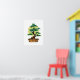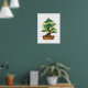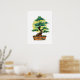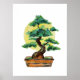 pintura acuarela tradicional de un árbol bonsai en una olla marrón frente al sol como una impresión decorativa poster.