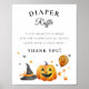 Un pequeño boo de Halloween calabaza de bebé ducha de pañales de rifa de pañales. Diseño moderno con temática de Halloween para un fiesta boo! Este cartel de ducha de bebé incluye una calabaza, un gorra de brujas, un globo, cuernos de caramelo y estrellas. ¡Esta señal es genial para los fiestas de ducha de niñas y niños!