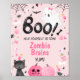 Póster Boo Halloween, Chica negro rosa, Rótulo de la fies