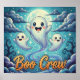 This fantasy poster features whimsical cute, smiling ghosts floating under a glowing full moon amid swirling stars and twisted trees, with "Boo Crew" in playful orange script, evoking friendly Halloween fun.