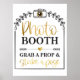 Te encantará esta corona de laurel negro con un corazón de arco y dorado y una cámara de caligrafía blanca y dorada que escribe diciendo que la cabina de fotos agarra un apoyo y golpea una pose.