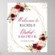 Póster Borgoña Red Floral Gold Frame Bridal Shower Rótulo