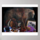 Aquí está Boris, el perro chico más dulce de la historia, con una vida quieta de objetos con temática equina. Hay una silla, botas, cintas, un cepillo, una gorra de caza y un libro abierto a una de mis pinturas favoritas del gran pintor de caballos Sir Alfred Munnings, entre otras cosas. Los dueños de este cuadro son también los dueños de uno de los hijos de Boris, un chico guapo llamado Basil. No dude en cambiar el tamaño de esta imagen si desea más o menos borde haciendo clic en la opción de diseño y arrastrando una esquina.