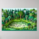 Este diseño imita el aspecto de un arte de corte de papel en capas para crear una escena boscosa exuberante. Se han utilizado varios tonos verdes para representar árboles, arbustos y el suelo del bosque. Los detalles son complicados, entre ellos pequeños animales, aves e insectos escondidos por toda la escena. El efecto de capas da la ilusión de profundidad, creando una apariencia 3D. Este poster apela a los amantes de la naturaleza, a los aficionados a la artesanía y a los que buscan arte texturizado y de aspecto táctil.