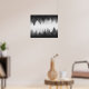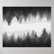 Fotografía en blanco y negro reflejada de una niebla cayendo sobre el bosque.
