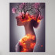 Póster Bosque en llamas en la cabeza Chica fantasía abstr