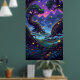 Póster Bosque mágico de los píxeles con luciérnagas inter