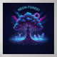 Póster Bosque Neon - Árbol brillante y animales luminosos