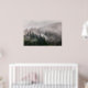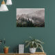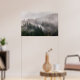 Esta foto muestra un bosque en las montañas cubierto de niebla y niebla.