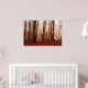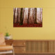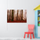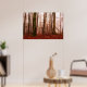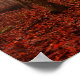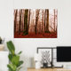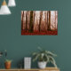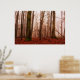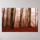Póster Bosque snowless del invierno de niebla rojo