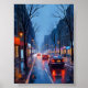 Póster Boston Rain | Downtown City Street Massachusetts