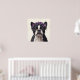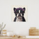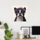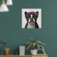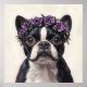 Poster con una linda pintura al óleo de un Boston Terrier usando una corona de flores moradas. Un regalo adorable para los amantes del perro y el dueño del Boston Terrier.