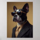 Póster Boston Terrier in Pinstripe Suit and Sunglasses