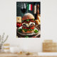 Descubre un tesoro milanés con esta deliciosa Hamburguesa de Trufa Italiana. Una jugosa hamburguesa de ternera infusionada con fragante aceite de trufa negra se combina con cremosa mozzarella fresca, dulces tomates secos y vibrante pesto de albahaca, todo apilado en un crujiente pan ciabatta. Una pequeña bandera italiana añade un toque de estilo italiano, mientras que el parmesano envejecido y una copa de vino blanco crujiente proporcionan un telón de fondo adecuado, lo que hace que esta sea una verdadera experiencia culinaria italiana.