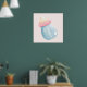 Poster con una linda imagen de una botella de bebé azul claro con una llanta rosa.