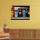 Póster Botellas naranja, marrón y azul