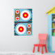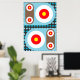Círculos, repetidos. azul claro, verde, tonos azules, rojos y amarillos. Los simples elementos circulares se unen para formar una composición de círculo simple. Dibujo de círculo basado en vectores. Recuerda el diseño escandinavo y la estética.