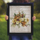 La hermosa impresión poster presenta una variedad de flores inspiradas en el otoño y un paisaje sobre la página del libro de música antigua