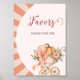 Añada un toque encantador a su ducha de bebé con tema de otoño con este elegante signo de preferencia de calabaza rosa. Con una calabaza acuática adornada con un arco rosado sedoso colocado en un carrito de bebés florido y "Favors" escrito en un guión elegante, este letrero es perfecto para recibir a los huéspedes para que tomen un placer. Los suaves tonos pastel y el suave diseño hacen que sea ideal para una ducha de bebé, celebración de otoño o evento con temática de calabaza. Simplemente colóquelo al lado de los favores de tu partido para una instalación cohesiva y adorable.