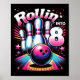 Póster Bowling Birthday Rollin Into 8 Party 8th Birthday