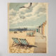 Bring nostalgic seaside charm to your walls with this retro Brighton poster. Featuring striped deck chairs, pastel beach huts, and a classic pier, this print channels the playful energy of 1950s British summer holidays.