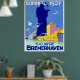 Vintage poster de 1927 celebrando el centenario de Bremerhaven, Alemania, fundada en 1827. El diseño representa las vistas al puerto y al faro de Roter Sand como telón de fondo.