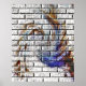Un diseño de arte digital de graffiti en una pared de ladrillo blanco.