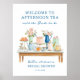 This elegant bridal shower tea party welcome poster features soft blue typography and charming watercolor illustrations of teapots, cakes, macarons, florals, and vintage teacups. Perfect for an afternoon tea or high tea bridal shower, this classic and feminine design sets the tone for a refined celebration. Ideal for garden parties, tea rooms, and traditional bridal showers, with space to customize all event details.