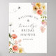 Bridal Shower Welcome Sign featuring colorful floral borders, a honeycomb pattern background and buzzing bees. Customize with your information for the mom to be. Click "click to customize further" to change the font style, size or color.