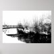 Bridge and Stream Winter Scene - Black and white photograph of a bridge over the Bornsebeek in winter near Borne, Netherlands.