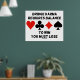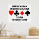 Muestra tu lado de jugador de puente irónico / duplicado con este poster que presenta los cuatro palos de cartas junto con el siguiente puente diciendo que muchos jugadores de puente estarán de acuerdo con: "Bridge Karma Requiere Equilibrio para Ganar Debes Perder".