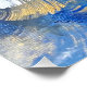 El cuadro presenta mariposas negras dispersas delicadamente por un fondo azul abstracto. Los tonos azules van desde el índigo profundo hasta el azul del cielo, creando un ambiente de ensueño. Las mariposas, en contraste, están en varias posiciones —algunas huyendo, otras descansando— añadiendo un sentido de movimiento a la composición. El fondo, texturado con pinceles y sutiles gradientes, evoca una sensación de profundidad y serenidad, mientras que las mariposas negras destacan como figuras elegantes y misteriosas, aportando un toque de contraste