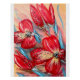 El cuadro presenta flores rojas vibrantes colocadas sobre un fondo abstracto de color claro. Las flores, con sus pétalos rojos audaces, destacan de manera prominente, añadiendo un sentido de calidez e intensidad a las obras de arte. Los tonos claros, como el beige, el crema o el pastel, crean un ambiente tranquilo y sereno. La naturaleza abstracta del fondo contrasta con las flores detalladas, convirtiéndolas en el punto central de la pintura.