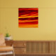 Este diseño presenta una imagen de nubes en varios tonos amarillos y naranjas sobre un fondo rojo. Es una hermosa escena de puesta de sol.