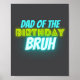 Póster Bruh Birthday Parent Funny Neon Glow Blue Green