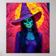 Póster Bruja de Halloween con diseño de cara de cráneo