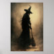Póster Bruja encantada - Silueta oscura en bosque de nieb