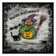 Póster Bruja, gato, murciélago y calabaza, ¡Feliz Hallowe