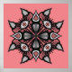 Diseño de bruja de gótico pastel en negro y rosa con ojos y cuernos - ilustracion digital simétrico de un monstruo con un temible sentimiento gótico.