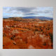 El Cañón Bryce que, a pesar de su nombre, no es un cañón sino un gigantesco anfiteatro natural creado por la erosión a lo largo del lado este de la meseta Paunsaugunt en Utah. Bryce es distintivo debido a estructuras geológicas llamadas hoodoos, formadas por el viento, el agua y la erosión de hielo de las rocas sedimentarias del lecho del río y del lago. Los colores rojos, naranjas y blancos de las rocas ofrecen unas vistas espectaculares a los visitantes del parque. Esta es una hermosa pintura digital de una de mis fotografías de Bryce.