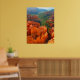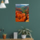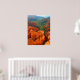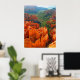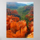 Posters de Bryce canyon Utah DE 8.99 . El cañón de Bryce no es un cañón, sino un anfiteatro natural gigante creado por la erosión a lo largo del lado oriental de la meseta de Paunsaugunt. Las palabras se confunden cuando no existen comparables. ¿Una cueva sin techo? ¿Un bosque de piedra? Incluso el "cañón" es engañoso, ya que Bryce está tallado por ciclos de deshielo, no por un río. Sin embargo, el "bache más grande del mundo" no es ni adecuado ni halagador. Bryce es distintivo debido a estructuras geológicas llamadas hoodoos, formadas por el viento, el agua y la erosión de hielo de las rocas sedimentarias del lecho del río y del lago. Los colores rojos, naranjas y blancos de las rocas ofrecen unas vistas espectaculares a los visitantes del parque. Bryce se encuentra en una altitud mucho mayor que el cercano Parque Nacional Zion. Espectacular en cualquier época del año esta maravilla del mundo añadirá majestuosidad y profundidad a cualquier habitación