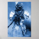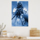 Póster buceo antiguo con casco de latón color azul