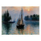 La vela matutina retrata una escena matutina serena en el agua, capturando la corriente suave navegando por un río bajo los suaves tonos del amanecer. El artista emplea su estilo impresionista, con delicadas pinceladas y una paleta de tonos suaves que evocan el ambiente tranquilo de la madrugada sobre el agua. El juego de la luz y la sombra crea una sensación de movimiento y profundidad, invitando a los espectadores a sumergirse en la belleza pacífica del momento.
